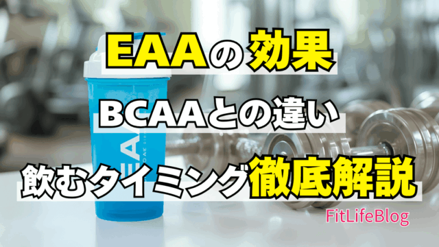 EAAは「Essential Amino Acids」の略で、体内で合成できない9種類の必須アミノ酸を指します。筋肉を作る材料となるだけでなく、筋肉合成の「スイッチ」を入れる役割も担っています。