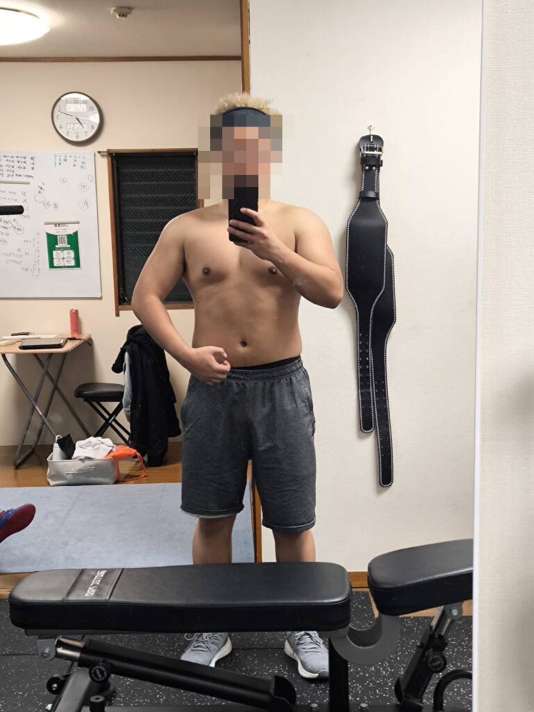 トレーニングの負荷も全体的に上がっており、ローイングはマシンの最大重量に到達したため、トレーナーに手で追加の負荷をかけてもらってトレーニングをしています。背中の厚みも徐々に出てきて、鏡を見るたびに理想の体型に近づいている感覚があります。